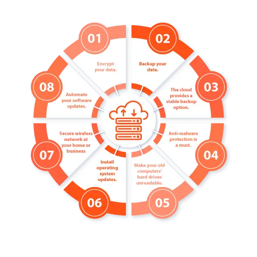 2. Implementing Solutions: Tailored strategies to encrypt, backup, and secure data, mitigating potential threats.